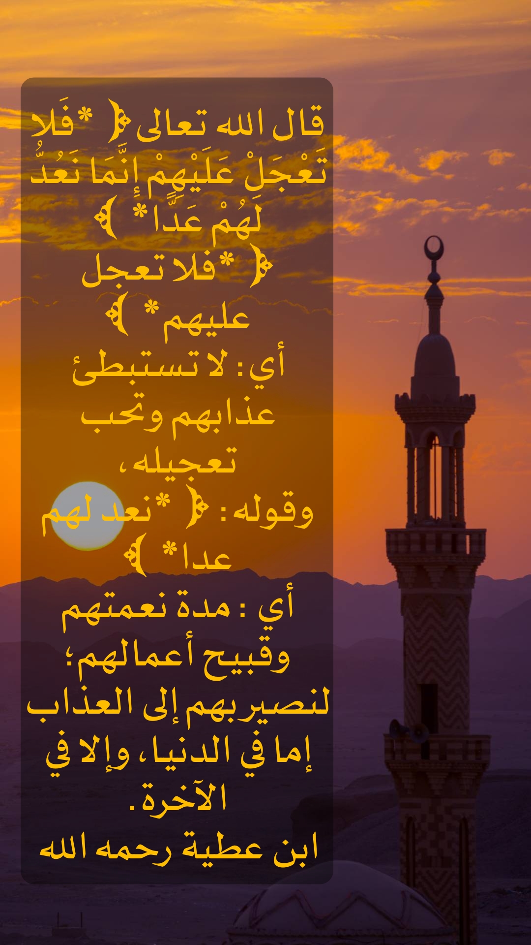 قال الله تعالى ( * فلا تَعْجَلْ عَلَيْهِمْ إِنَّمَا نَعْدُّ لَهُمْ عَدًّا* )