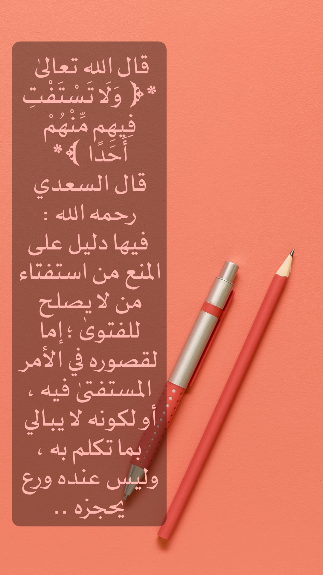 قال السعدي رحمه الله : فيها دليل على المنع من استفتاء من لا يصلح للفتوى ؛ إما لقصوره في الأمر المستفتى فيه ، أو لكونه لا يبالي بما تكلم به ، وليس عنده ورع يحجزه ..