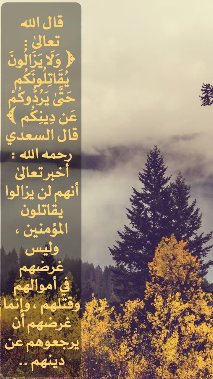 "وَلَا يَزَالُونَ يُقَاتِلُونَكُمْ حَتَّى يَرُدُّوكُمْ عَن دِينِكُمْ"