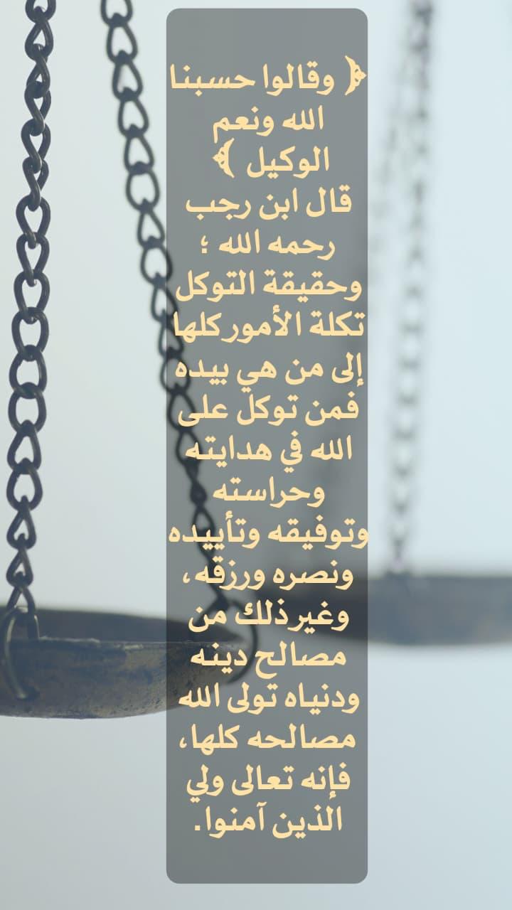 وحقيقة التوكل تكلة الأمور كلها إلى من هي بيده، فمن توكل على الله في هدايته وحراسته وتوفيقه وتأييده ونصره ورزقه، وغير ذلك من مصالح دينه ودنياه تولى الله مصالحه كلها، فإنه تعالى ولي الذين آمنوا .