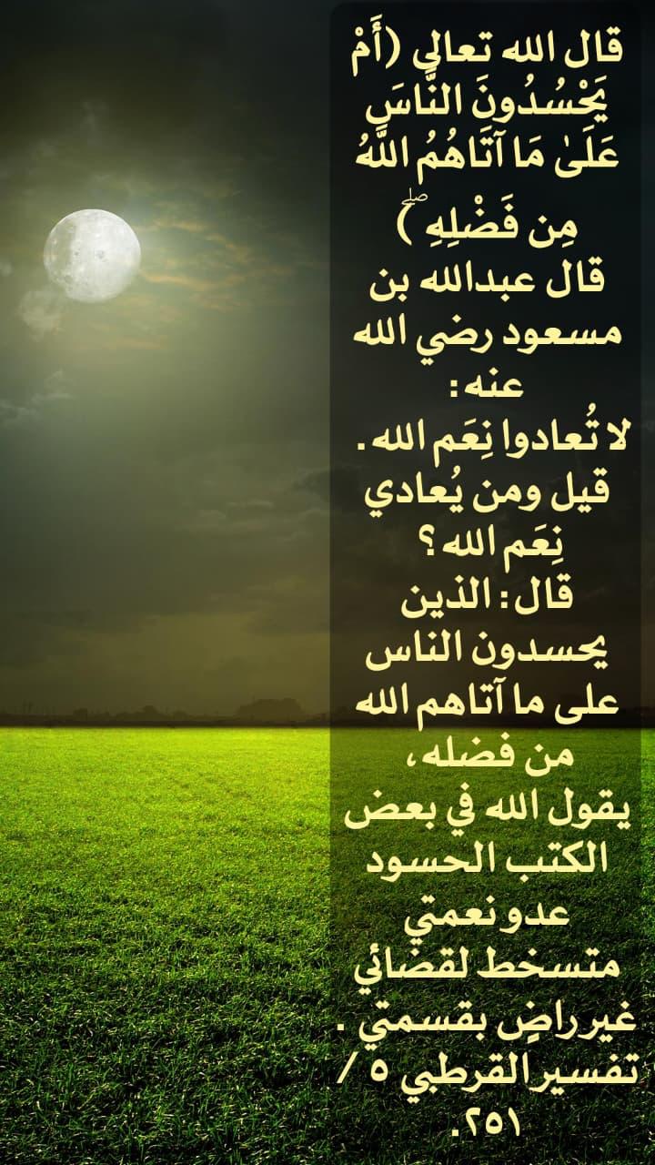 قال : الذين يحسدون الناس على ما آتاهم الله من فضله يقول الله في بعض الكتب الحسود عدو نعمتي متسخط القضائي غير راض بقسمتي.
