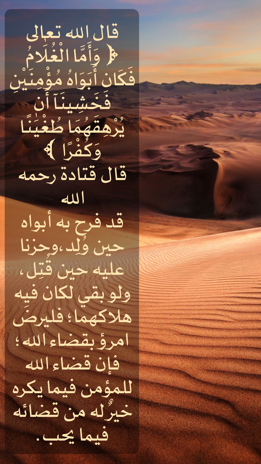 (وَأَمَّا الْغُلَامُ فَكَانِ أَبَوَاهُ مُؤْمِنَيْنِ فَخَشِينَا أَن يُرْهِقَهُمَا طُغْيَنًا وَكُفْرًا)