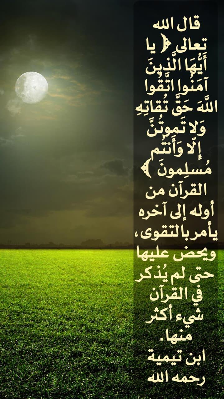 قال تعالى: (يا أَيُّهَا الَّذِينَ آمَنُوا اتَّقُوا اللَّهَ حَقَّ تُقَاتِهِ وَلا تَمُوتُنَّ إلَّا وَأَنتُم مُسلِمون)