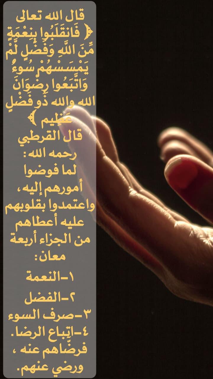 (رضي الله عنهم ورضوا عنه)، فعلمت أن الله هو الذي يرضى عن العبد أولاً .