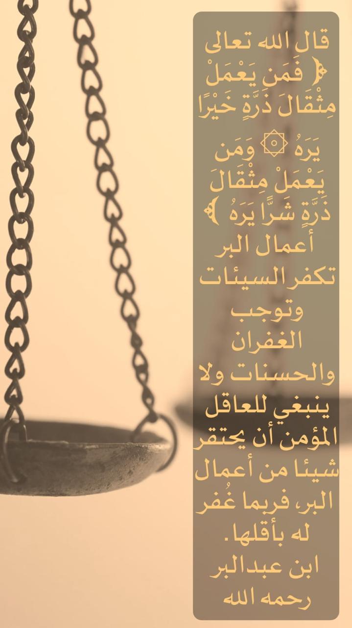 ﴿فَمَن يَعْمَلْ مِثْقَالَ ذَرَّةٍ خَيْرًا يَرَهُ . وَمَن يَعْمَلْ مِثْقَالَ ذَرَّةٍ شَرًّا يَرَهُ﴾