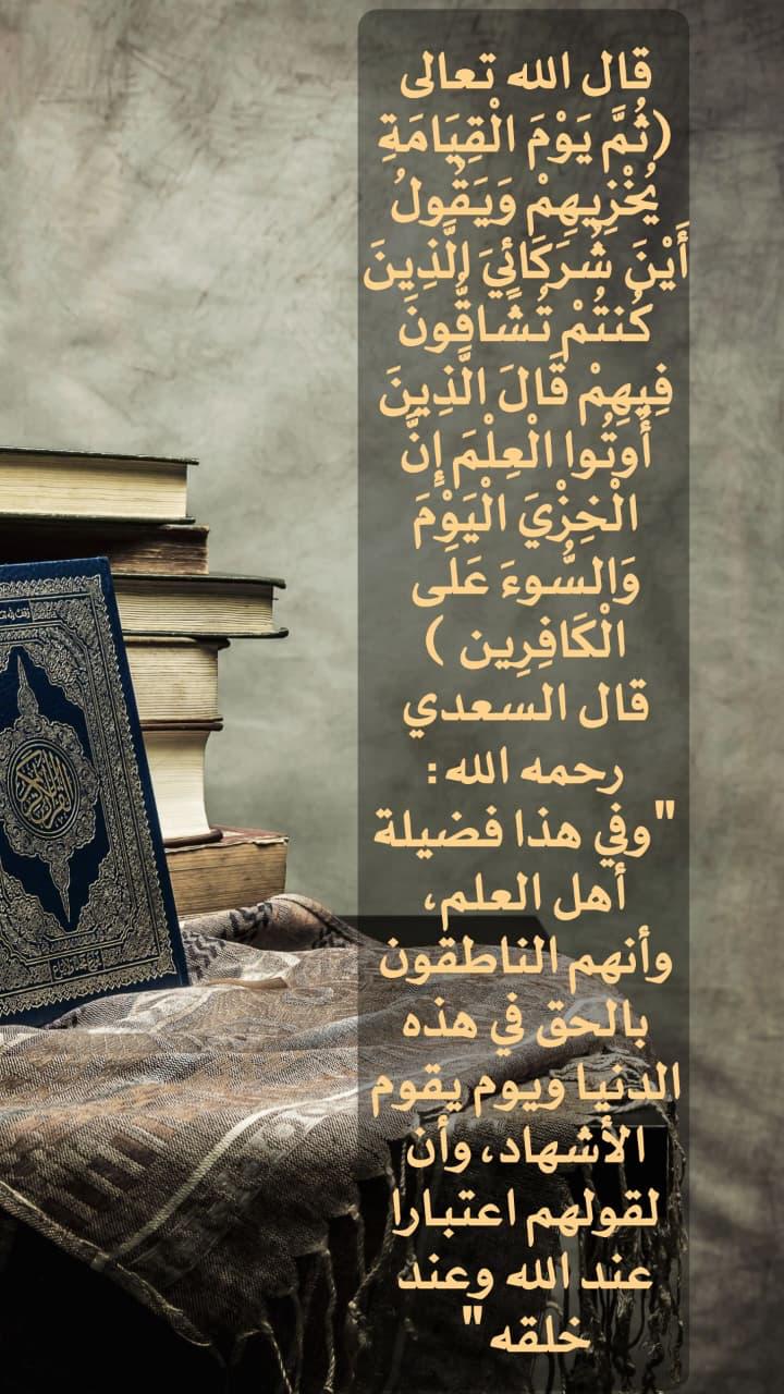 ﴿ثُمَّ يَوْمَ الْقِيَامَةِ يُخْزِيهِمْ وَيَقُولُ أَيْنَ شُرَكَائِيَ الَّذِينَ كُنتُمْ تُشَاقُّونَ فِيهِمْ قَالَ الَّذِينَ أُوتُوا الْعِلْمَ إِنَّ الْخِزْيَ الْيَوْمَ وَالسُّوءَ عَلَى الْكَافِرِينَ﴾
