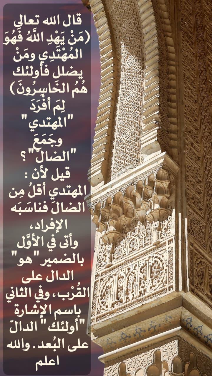 (مَنْ يَهْدِ اللَّهُ فَهُوَ المُهْتَدِي وَمَنْ يضلل فأولئك هُمُ الخَاسِرُونَ)