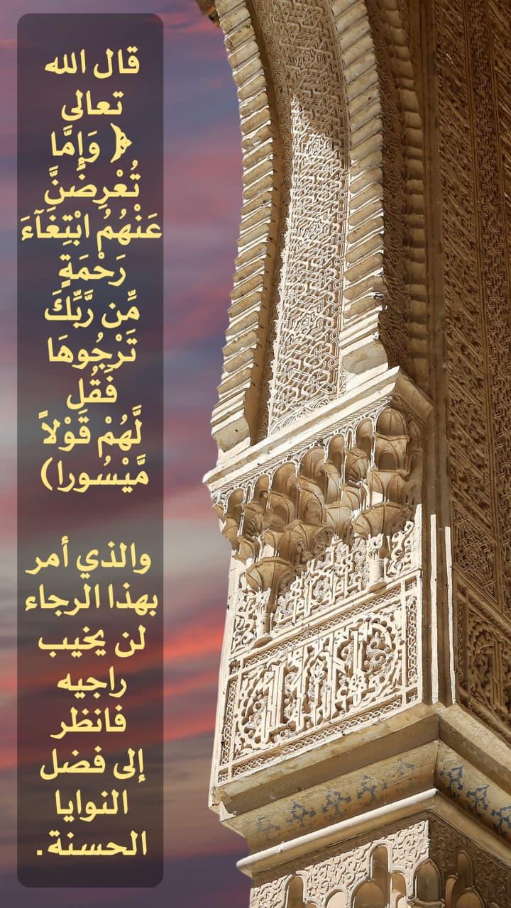 ﴿وَإِمَّا تُعْرِضَنَّ عَنْهُمُ ابْتِغَاءَ رَحْمَةٍ مِّن رَّبِّكَ تَرْجُوهَا فَقُل لَّهُمْ قَوْلًا مَّيْسُورًا﴾