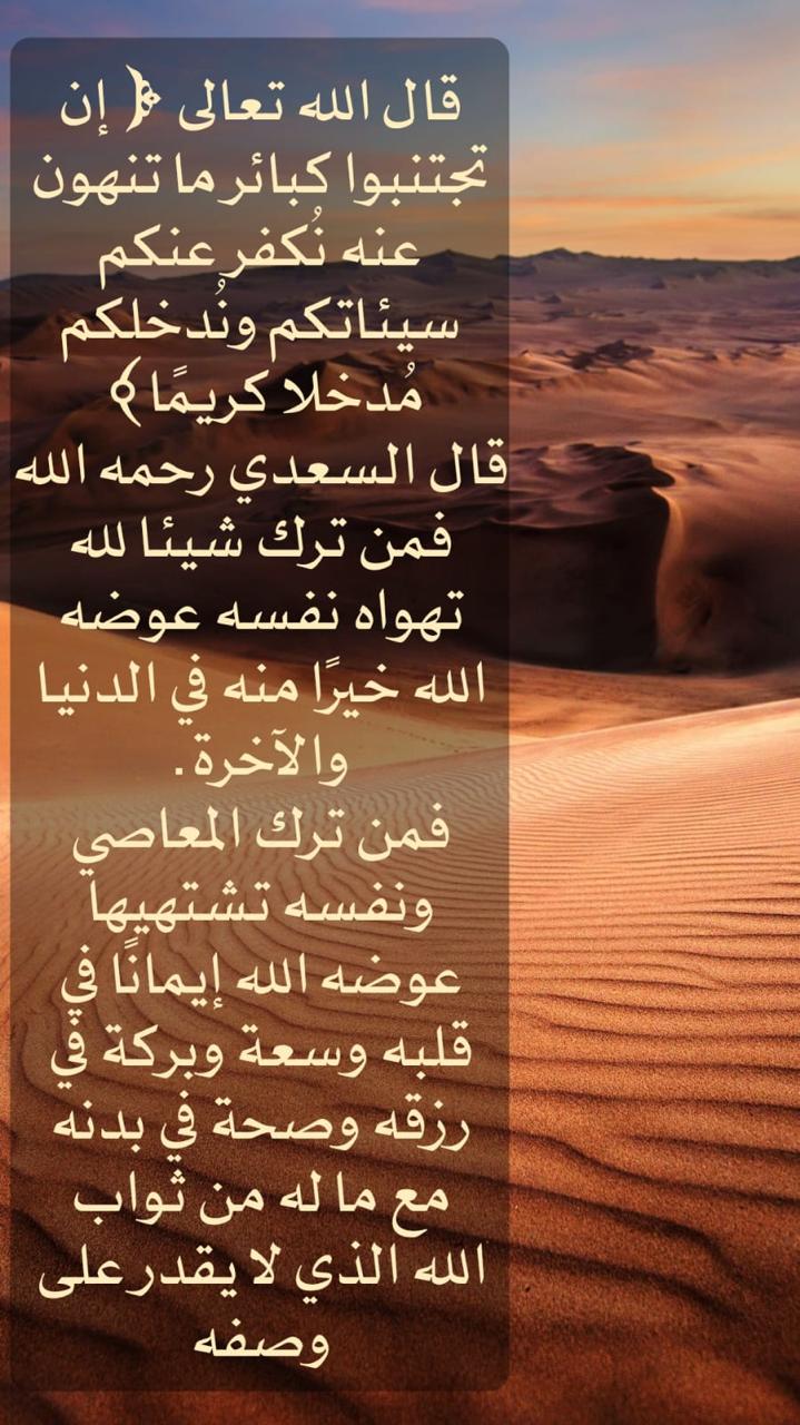 ﴿إِن تَجْتَنِبُوا كَبَائِرَ مَا تُنْهَوْنَ عَنْهُ نُكَفِّرْ عَنكُمْ سَيِّئَاتِكُمْ وَنُدْخِلْكُم مُّدْخَلًا كَرِيمًا