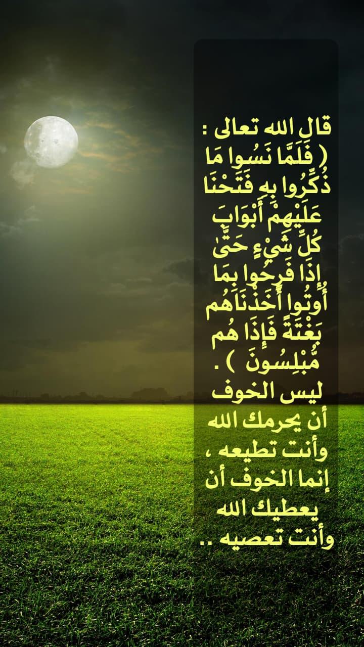 • ليس الخوف أن يحرمك الله وأنت تطيعه ، إنما الخوف أن يعطيك الله وأنت تعصيه!
