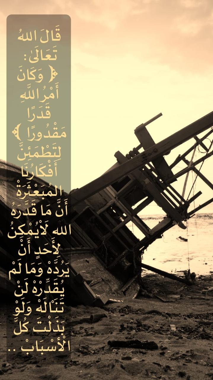 لتطمئن أفكارنا المبعثرة أَنْ مَا قَدَرَهُ الله لا يمكن لأحد أن يَرُدُّهُ وَمَا لَمْ يقدره لن تَنَالَهُ وَلَوْ بذلت كل الأسباب.