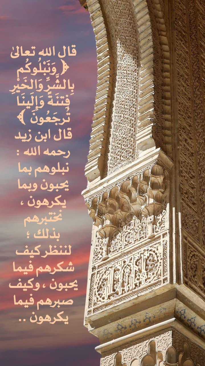 • قال ابن زيد رحمه الله : نبلوهم بما يحبون وبما يكرهون، نختبرهم بذلك ؛ لننظر كيف شكرهم فيما يحبون، وكيف صبرهم فيما يكرهون.