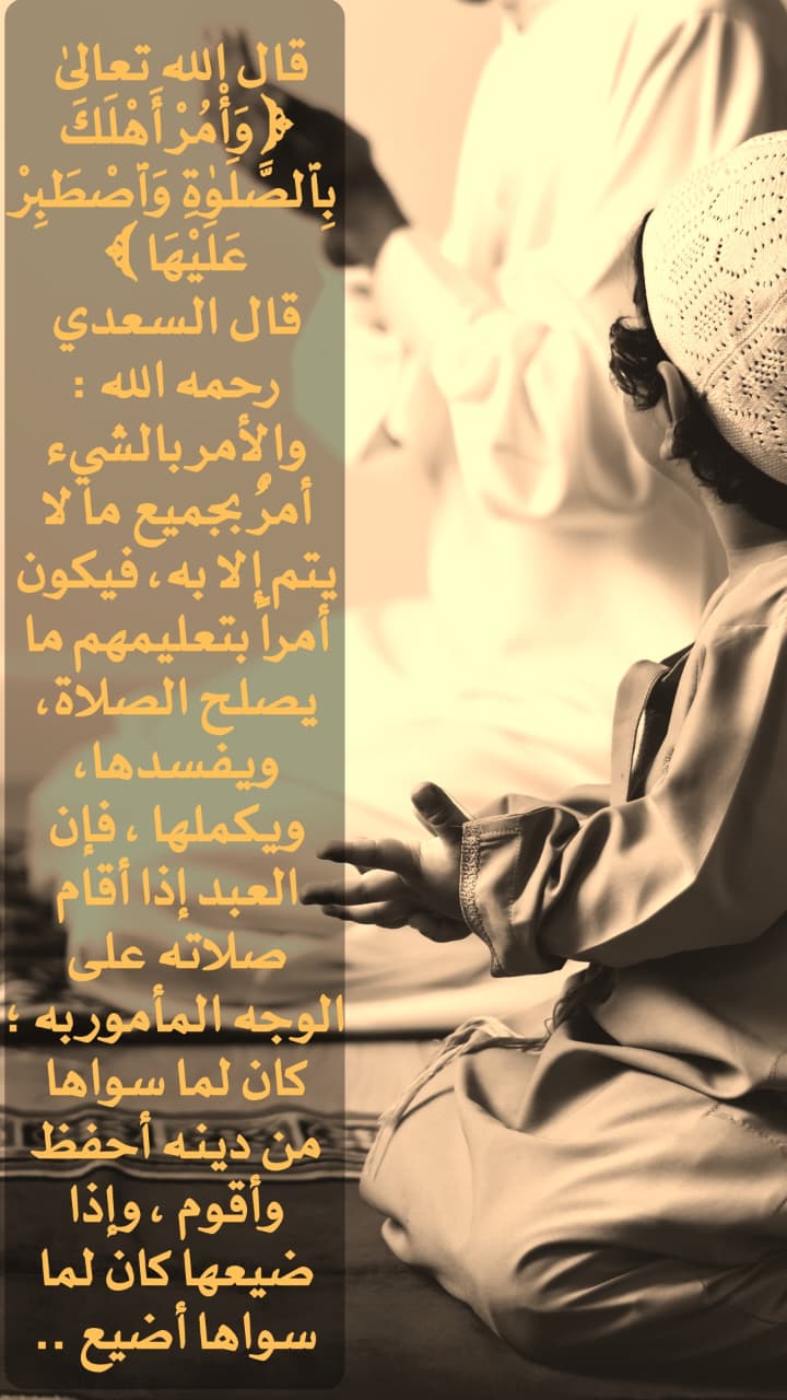 ﴿وَأْمُرْ أَهْلَكَ بِالصَّلَاةِ وَاصْطَبِرْ عَلَيْهَا﴾