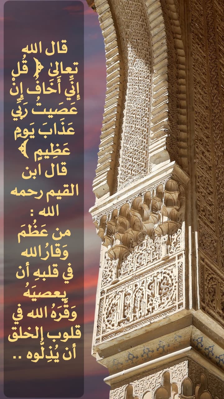 • من عَظُمَ وقار الله في قلبه أن يعصيه وَقَّرَهُ الله في قلوب الخلق أن يُذلوه ..