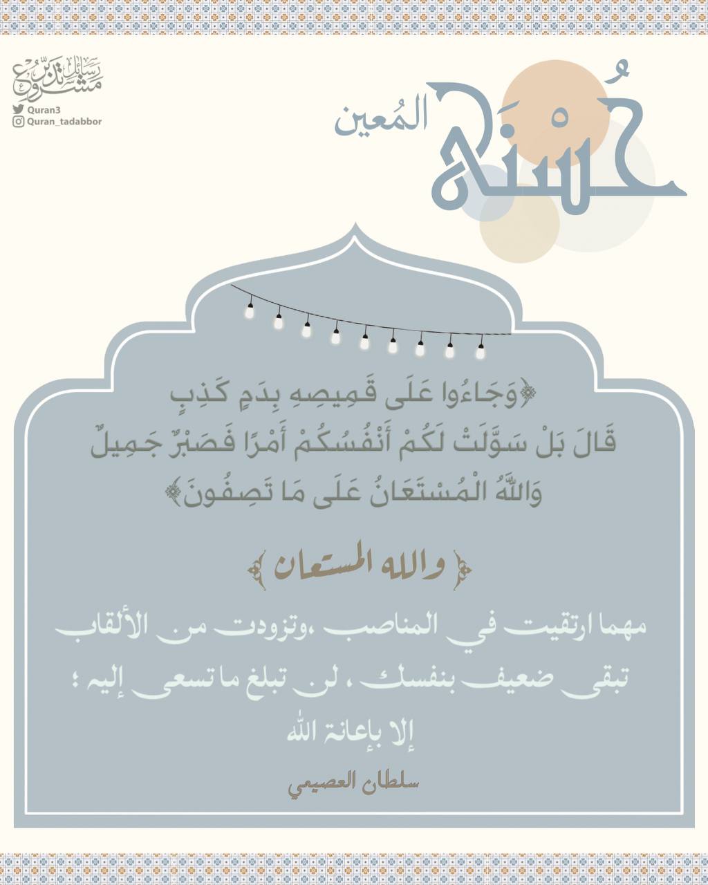 ﴿وَجَاءُوا عَلَى قَمِيصِهِ بِدَمٍ كَذِبٍ قَالَ بَلْ سَوَّلَتْ لَكُمْ أَنْفُسُكُمْ أَمْرًا فَصَبْرٌ جَمِيلٌ وَاللَّهُ الْمُسْتَعَانُ عَلَى مَا تَصِفُونَ﴾
