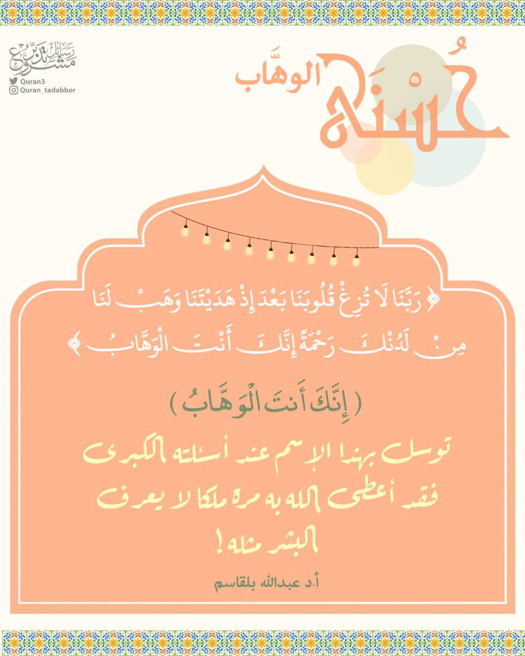 • توسل بهذا الإسم عند أسئلته الكبرى فقد أعطى الله به مرة ملكا لا يعرف البشر مثله !