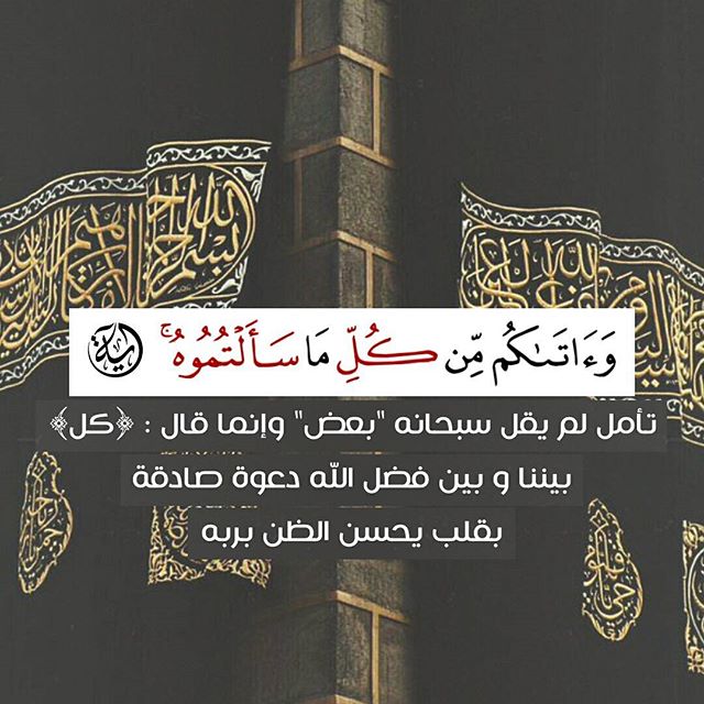 .(وآتاكم من كل ما سألتموه) تأمل لم يقل سبحانه "بعض" وإنما قال : (كُل) بيننا وبين فضل الله دعوة صادقة بقلب يحسن الظن بربه