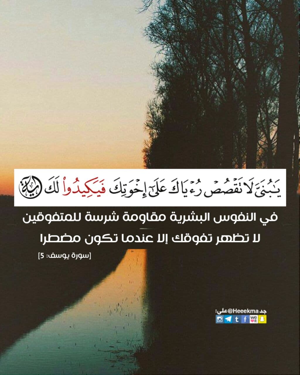 (يا بني لا تقصص رؤياك على أخوتك فيكيدوا لك) في النفوس البشرية مقاومة شرسة للمتفوقين لا تظهر تفوقك إلا عندما تكون مضطرا