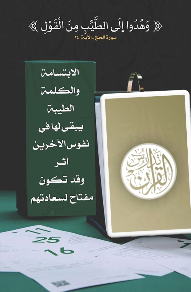 ﴿وَهُدُوا إِلَى الطَّيِّبِ مِنَ الْقَوْلِ﴾ الابتسامة والكلمة الطيبة يبقى لها في نفوس الآخرين أثر وقد تكون مفتاح لسعادتهم.