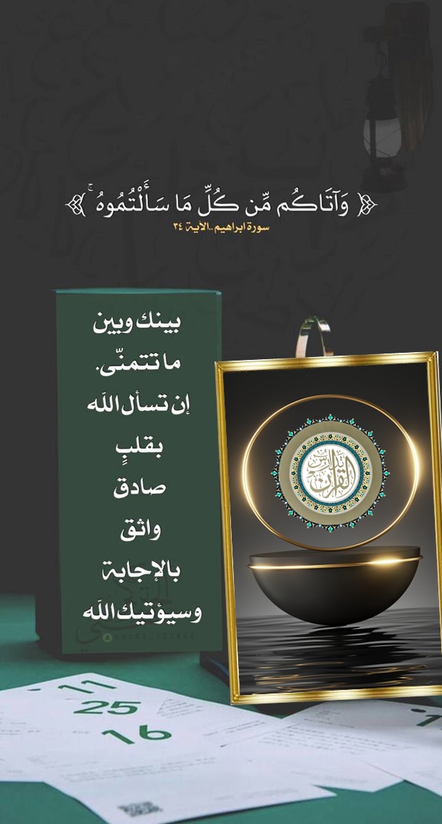 ﴿وَآتَاكُم مِّن كُلِّ مَا سَأَلْتُمُوهُ﴾ بينك وبين ما تتمنّىٰ .. أن تسأل الله بقلبٍ صادِق واثق بالإجابة، وسيؤتيك الله سبحانه.