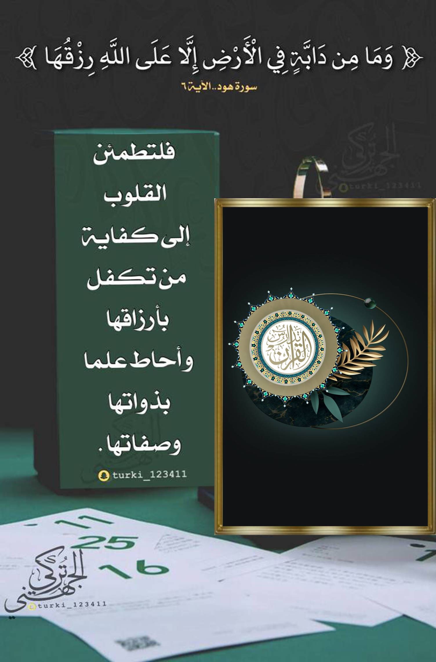 - ﴿وَمَا مِن دَابَّةٍ فِي الْأَرْضِ إِلَّا عَلَى اللَّهِ رِزْقُهَا وَيَعْلَمُ مُسْتَقَرَّهَا وَمُسْتَوْدَعَهَا كُلٌّ فِي كِتَابٍ مُّبِينٍ ﴿٦﴾ ﴾ [هود آية:٦]