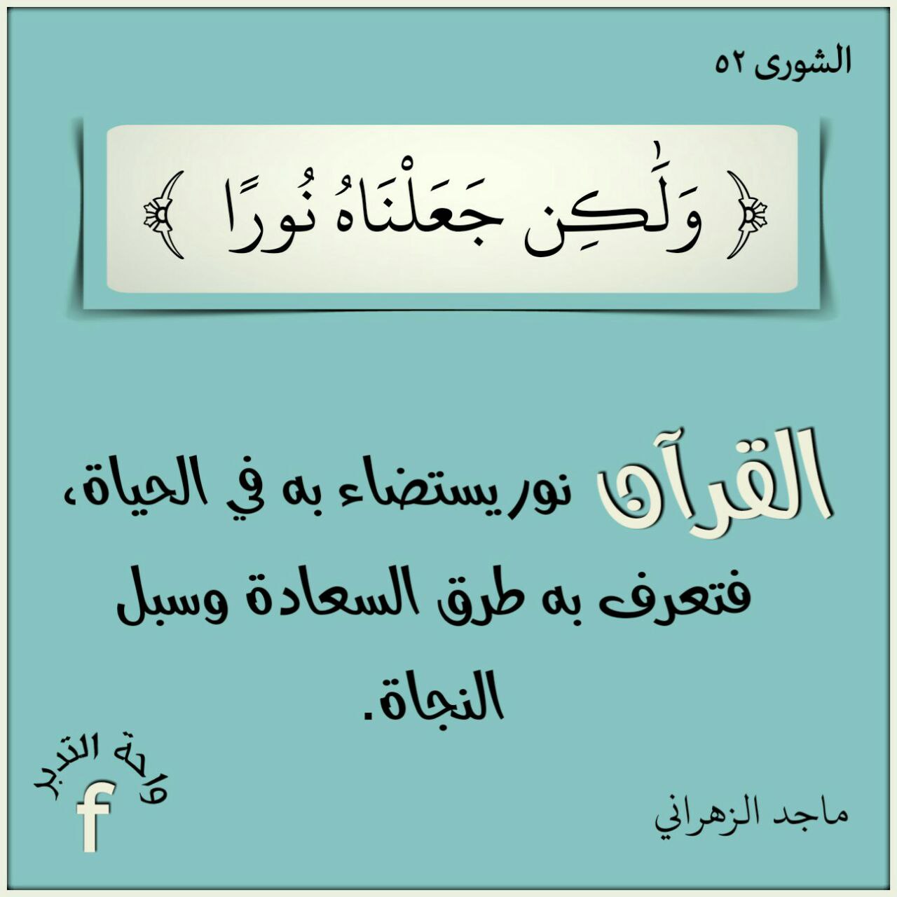 القرآن نور يستضاء به في الحياة فتعرف به طرق السعادة وسبل النجاة.