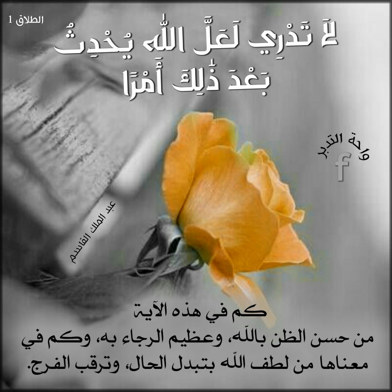 - ﴿يَا أَيُّهَا النَّبِيُّ إِذَا طَلَّقْتُمُ النِّسَاءَ فَطَلِّقُوهُنَّ لِعِدَّتِهِنَّ وَأَحْصُوا الْعِدَّةَ وَاتَّقُوا اللَّهَ رَبَّكُمْ لَا تُخْرِجُوهُنَّ مِن بُيُوتِهِنَّ وَلَا يَخْرُجْنَ إِلَّا أَن يَأْتِينَ بِفَاحِشَةٍ مُّبَيِّنَةٍ وَتِلْكَ حُدُودُ اللَّهِ وَمَن يَتَعَدَّ حُدُودَ اللَّهِ فَقَدْ ظَلَمَ نَفْسَهُ لَا تَدْرِي لَعَلَّ اللَّهَ يُحْدِثُ بَعْدَ ذَلِكَ أَمْرًا ﴿١﴾ ﴾ [الطلاق آية:١]