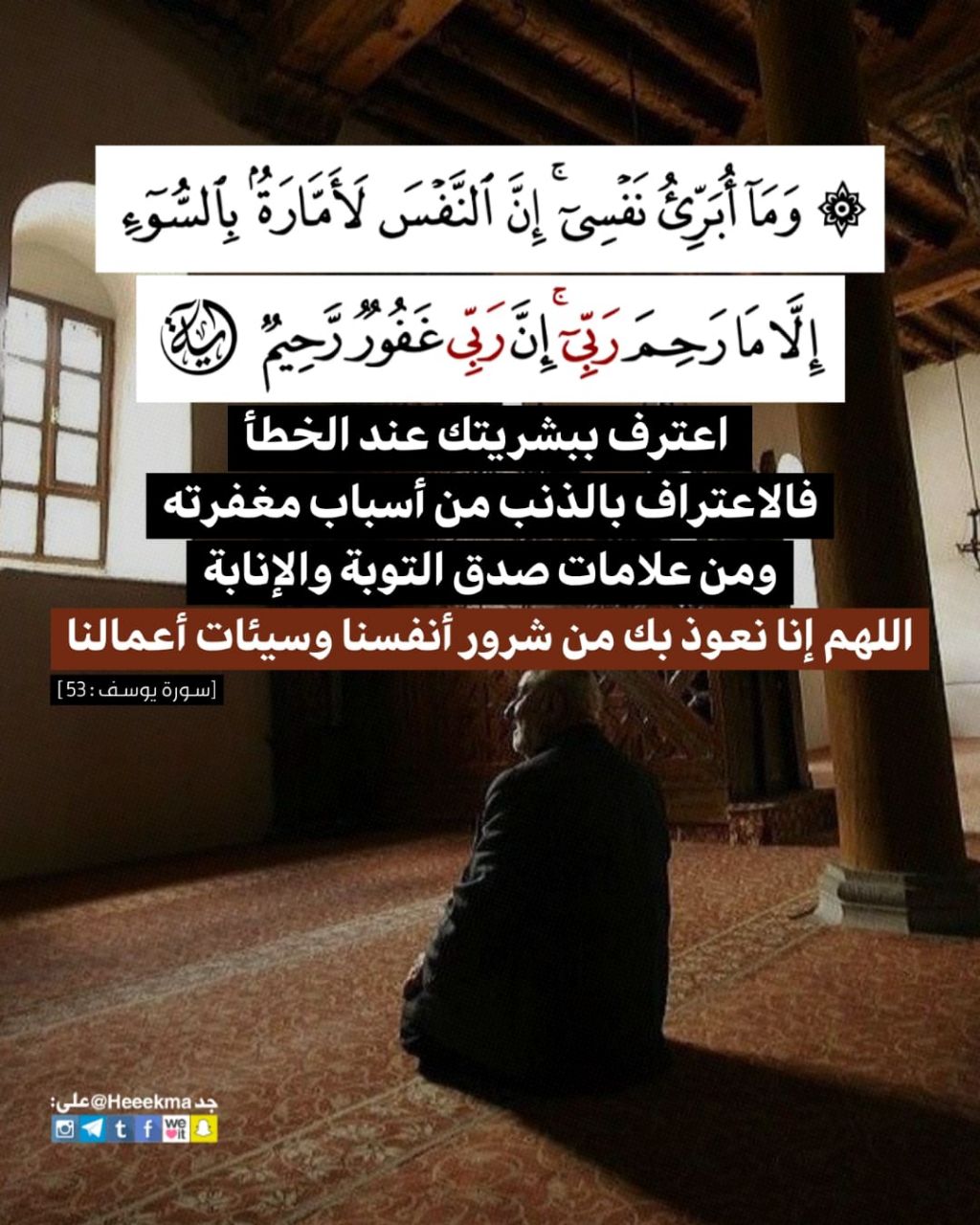 اعترف ببشريتك عند الخطأ، فالاعتراف بالذنب من أسباب مغفرته، ومن علامات صدق التوبة والإنابة، اللهم إنا نعوذ بك من شرور أنفسنا وسيئات أعمالنا.