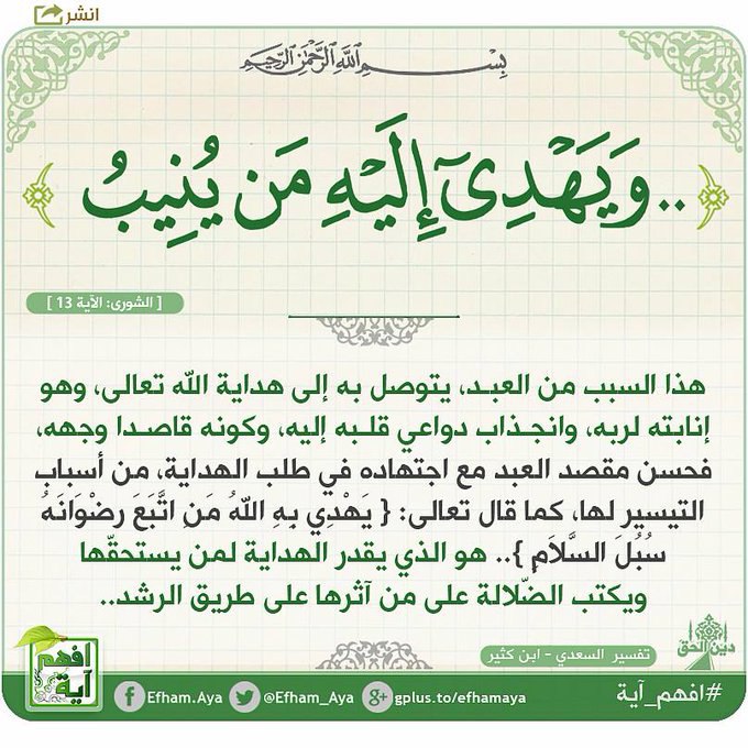 ﴿..وَيَهْدِي إِلَيْهِ مَن يُنِيبُ﴾.