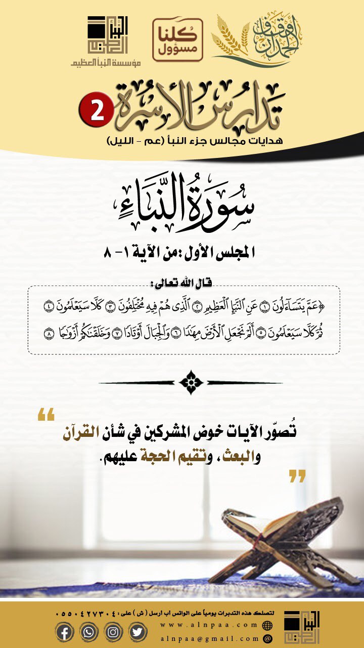 - ﴿عَمَّ يَتَسَاءَلُونَ ﴿١﴾ ﴾ [النبأ آية:١]